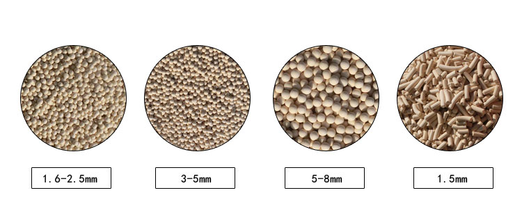 其型號有:3A(鉀A型)、4A(鈉A型)、5A(鈣A型)、10Z(鈣Z型)、13Z(鈉Z型)、Y(鈉Y型)、鈉絲光沸石型等。它的吸附能力高、選擇性強、耐高溫。廣泛用于有機化工和石油化工,也是煤氣脫水的優良吸附劑。在廢氣凈化上也日益受到重視。
